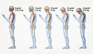 Μια αναφορά στο Neuro and Spine Surgery Journal αναφέρει ότι ένα κεφάλι ενηλίκου ζυγίζει 4,5kg κιλά στην ουδέτερη θέση. Όταν το κεφάλι γέρνει προς τα εμπρός στην μπροστινή στάση του κεφαλιού ενώ κοιτάζετε το κινητό τηλέφωνο, το βάρος στο λαιμό αυξάνεται στα: